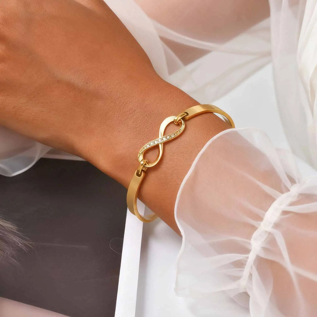 Infinity Cubic Zirconia Bracelet Stainless Steel Bangle, Women Anniversary Gift Wedding Love Jewelry for Her