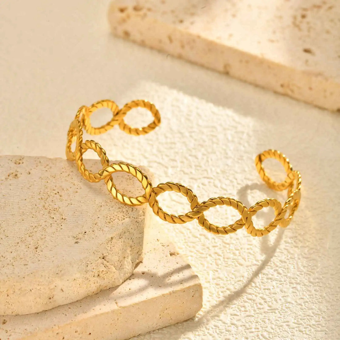 Twist Braided Cuff Bracelet for Women, Aesthetic Stainless Steel Bangle Opening Gold Color Geometric Femme Jewelry
