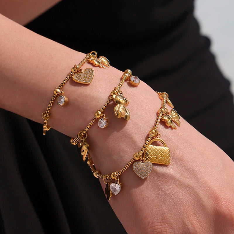 Nivora Distinctive Stainless Steel Charm Bracelets Anklet For Women Multiple Shape Pendant Bracelet Women Daily Wear Jewelry