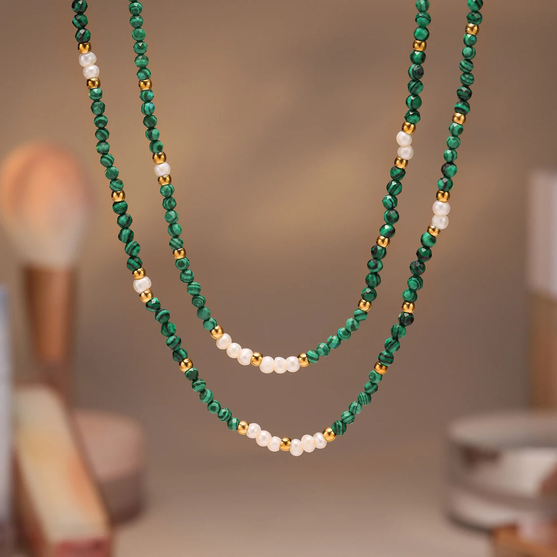 Nivora Green Malachite Freshwater Pearl Strand Beads Necklace For Women Stainless Steel Choker Necklace Wedding Handmade Jewelry