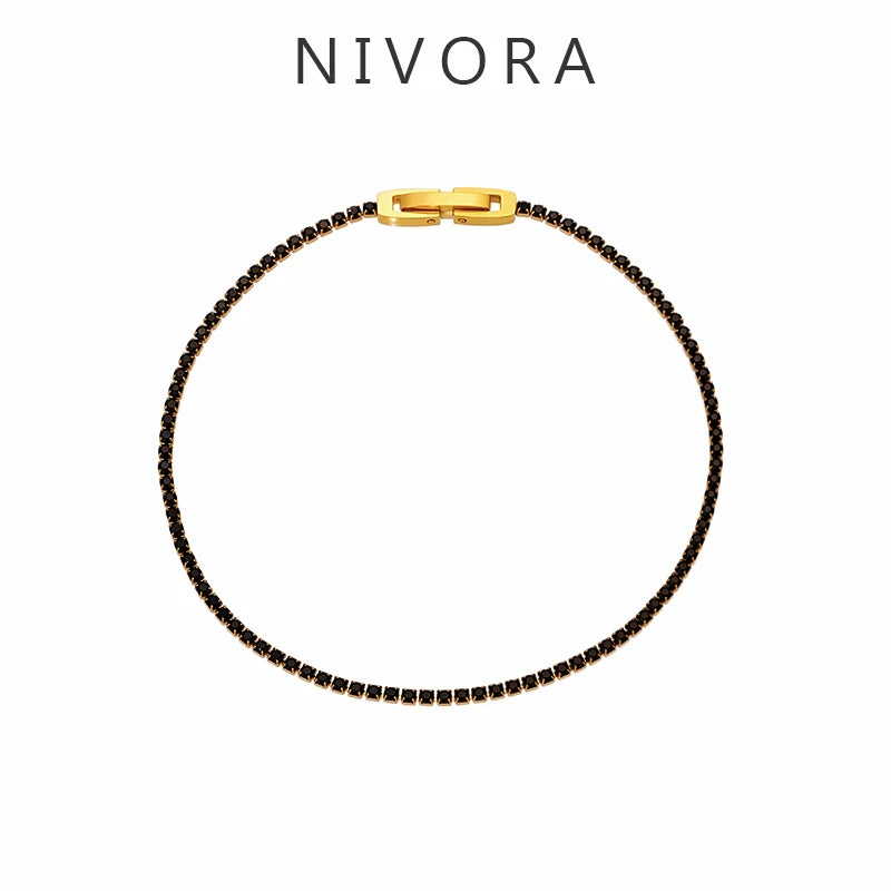 Nivora Full Multi-Color Shiny Zircon Stainless Steel Tennis Bracelet For Women Charm Wedding Engagement Thin Chain Wrist Jewelry