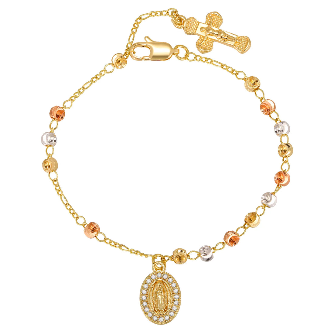 Zircon Virgin Mary Religious Bracelet for Women, Tricolor Beaded Golden Cross Rosary Catholic Bracelet, Baptism Jewelry