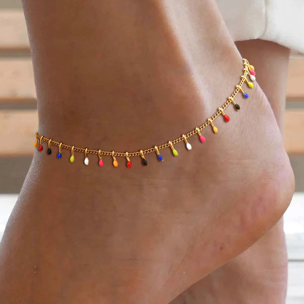 Tiny Beads Anklet Bracelet for Women, Colorful Tassel Foot Chain, Dainty Adjustable Beach Boho Anklets Jewelry Gift