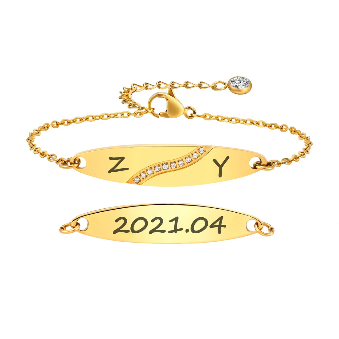 Couple Name Date Customized Bracelet,Zircon Surfboard Engrave Bracelets for Lovers,Personalized Birthday Anniversary Record