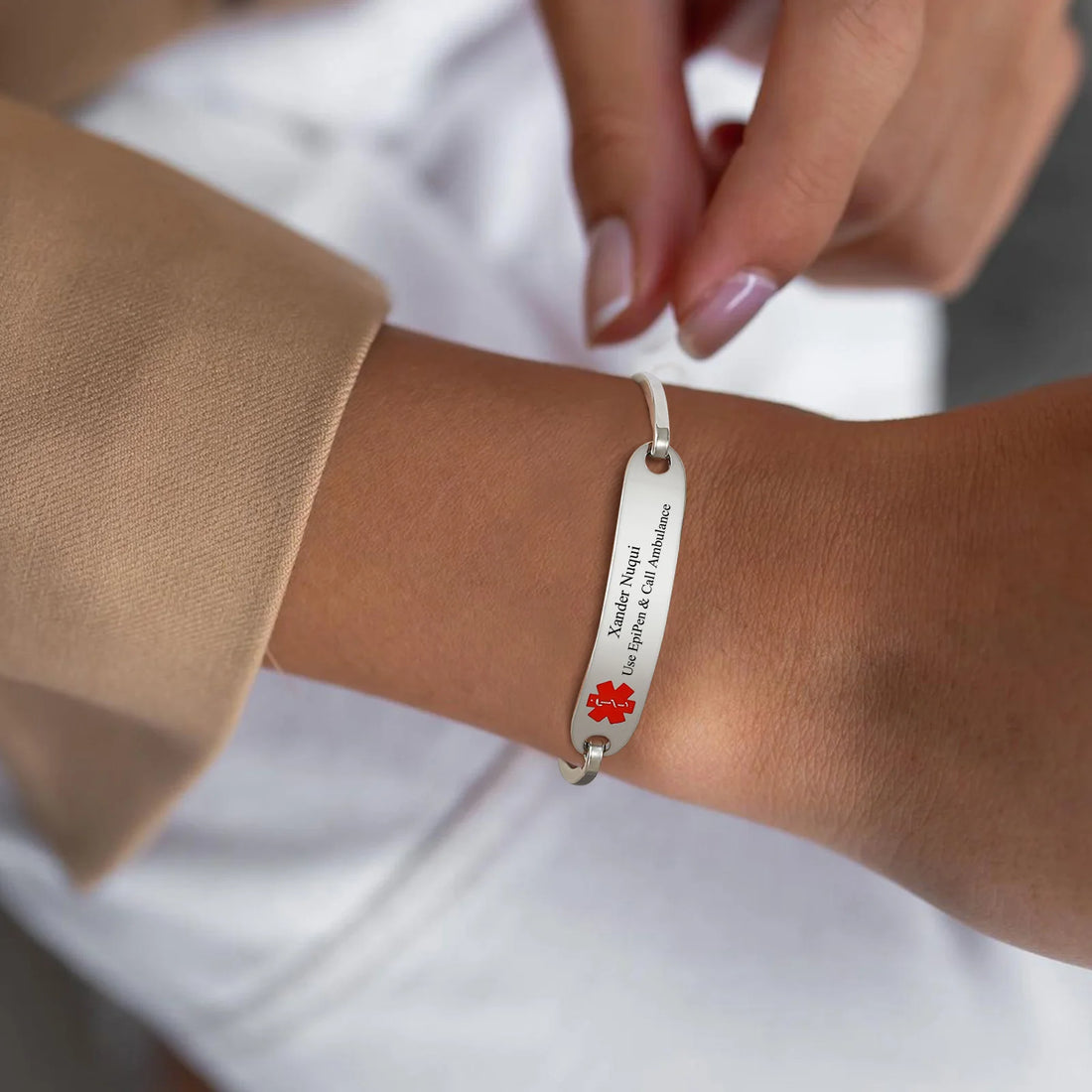 Personalized Medical Alert Cuff Bracelet for Women Men, Free Engraving Stainless Steel ID Bangle, Emergency Contact SOS Jewelry
