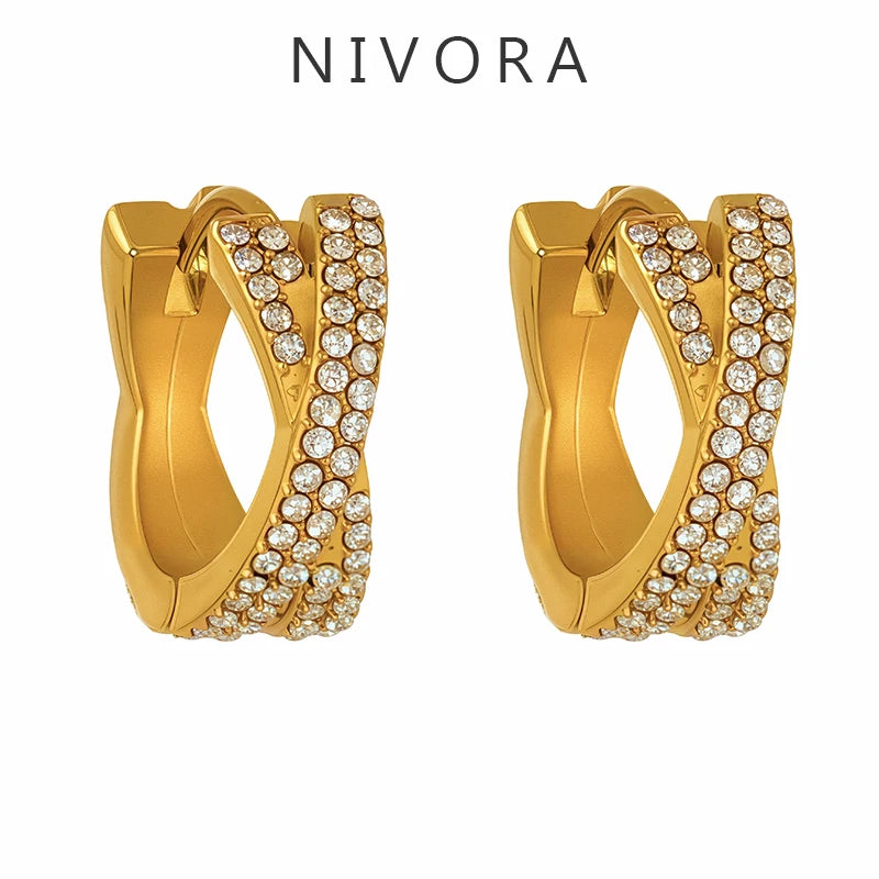 Nivora Exquisite Zircon Stainless Steel Hoop Earrings For Women PVD Gold Plated Hypoallergenic Wedding Women Earrings Jewelry