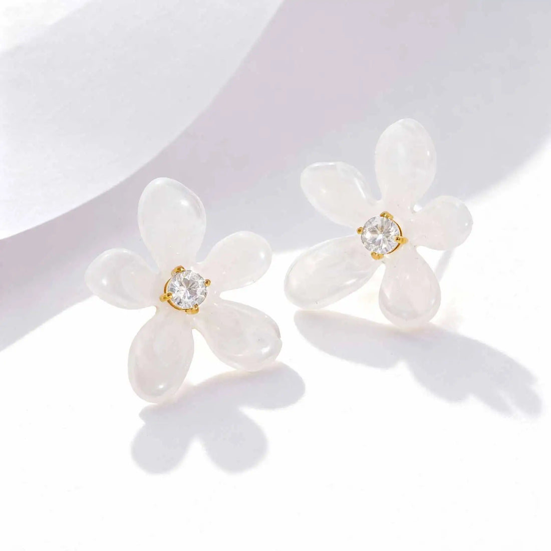 White Resin Flower Shape With Zircon Earrings for Women Stainless Steel Transparent Earrings Elegant Jewelry Gift