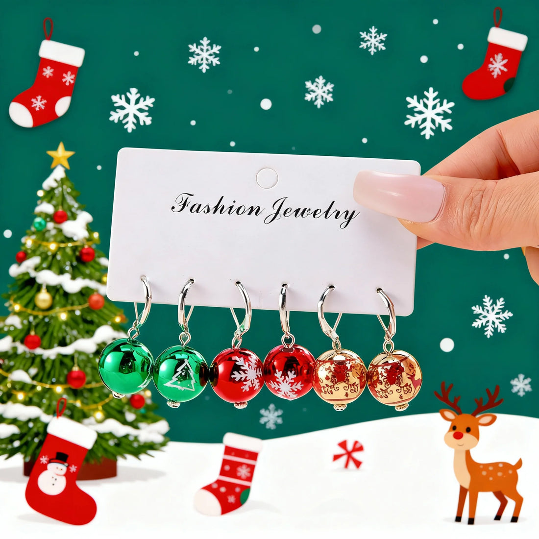 Creative Christmas Resin Ball Earrings Set For Women Red Green Round Ball Snowflake Xmas Tree Dangle Earring New Year Jewelry