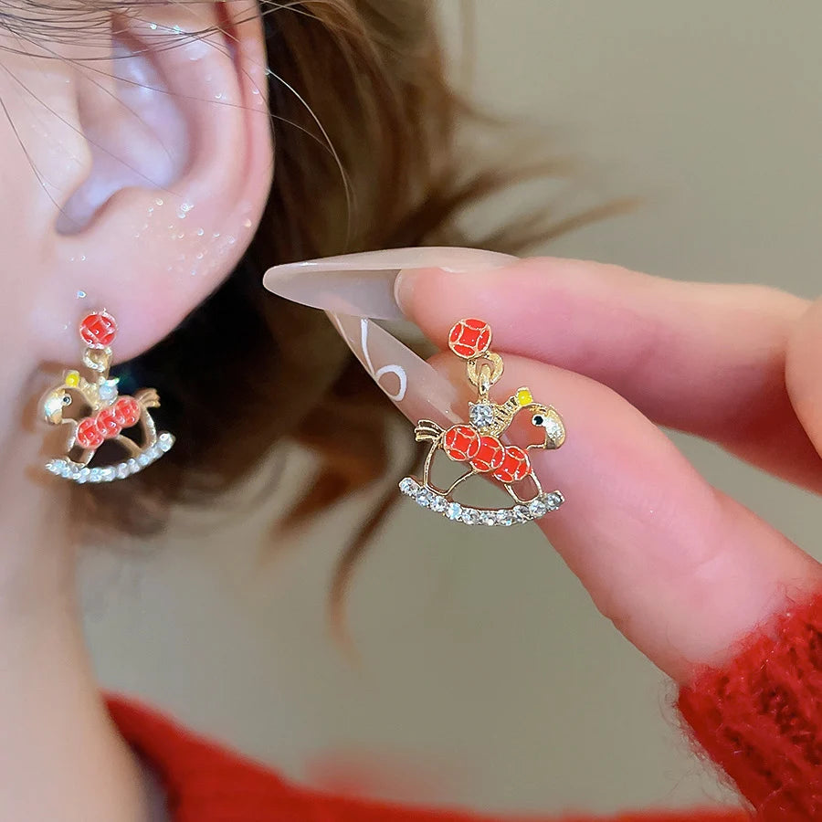 Crystal Zircon Cute Animal Stud Earrings for Women Shiny Rhinestone Horse Temperament Earring Girls Party Festival Charm Jewelry