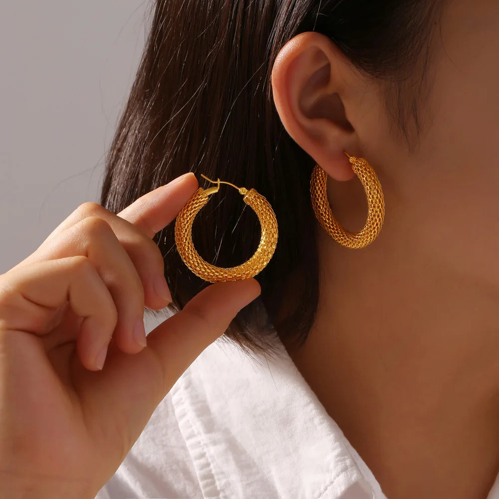 Nivora Stainless Steel Grid Hoop Earrings for Women Prevent Allergy Waterproof No Tarnish Daily Earrings Women Jewelry