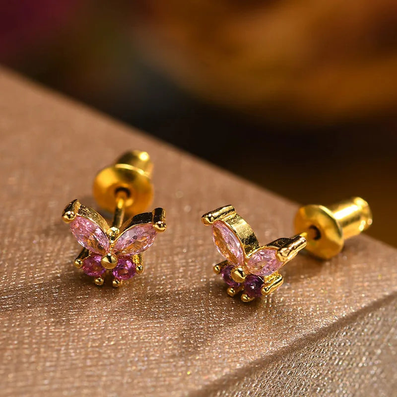 Bling CZ Stone Butterfly Stud Earrings for Women Girls, Trendy Gold Color Anti Allergy Metal Cubic Zirconia Ear Jewelry
