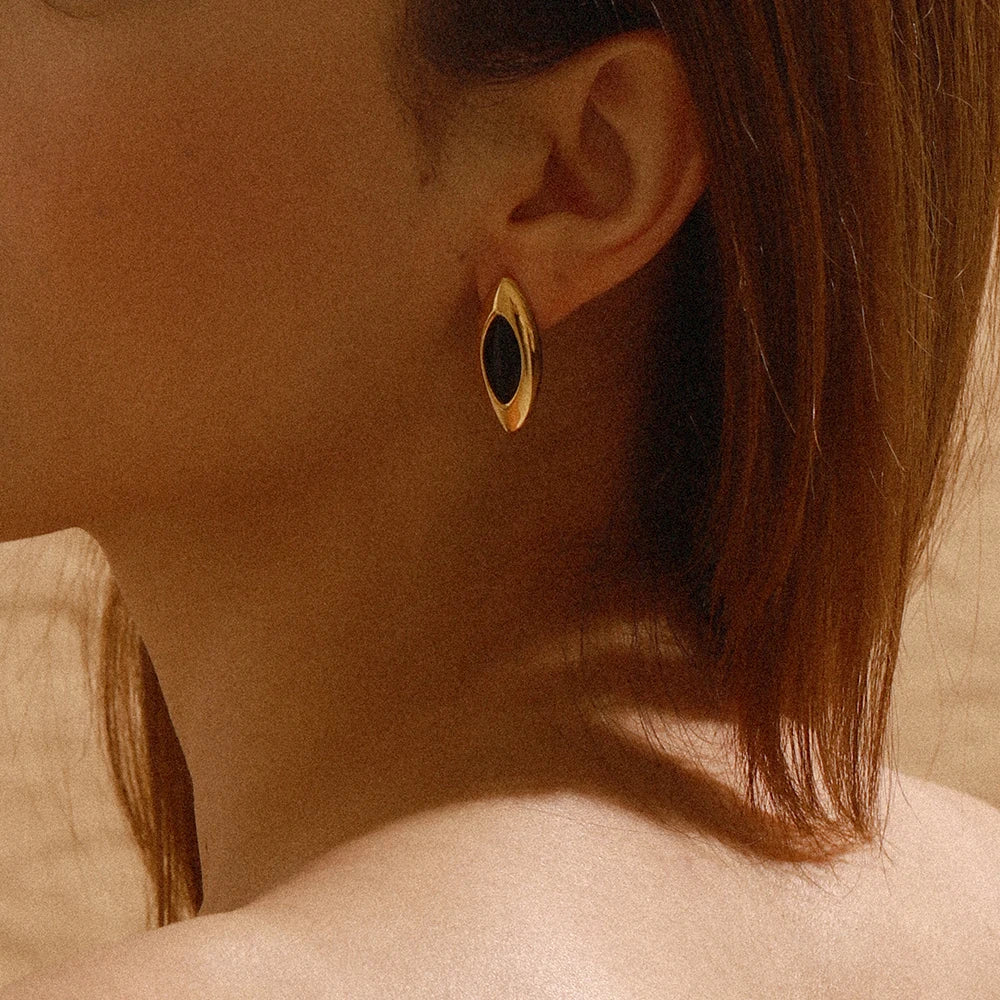 Uworld Minimalist Smooth Surface Horse Eye Ear Studs Stainless Steel 18k Gold Color Plated Glasses Earrings Women's Jewelry Dail