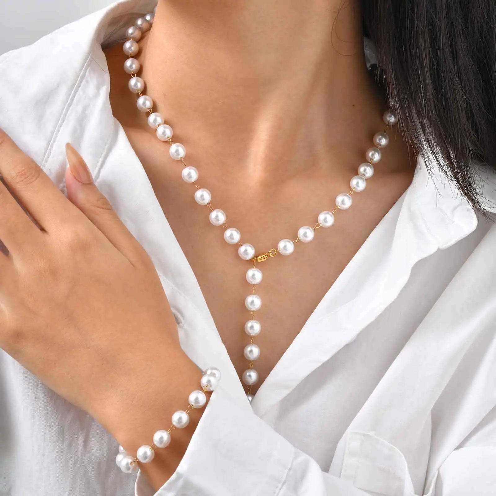 Elegant Imitation Pearl Bracelet for Women,Stainless Steel Waterproof Beaded Chain Bracelets,Daily New Fashion Jewelry Gift