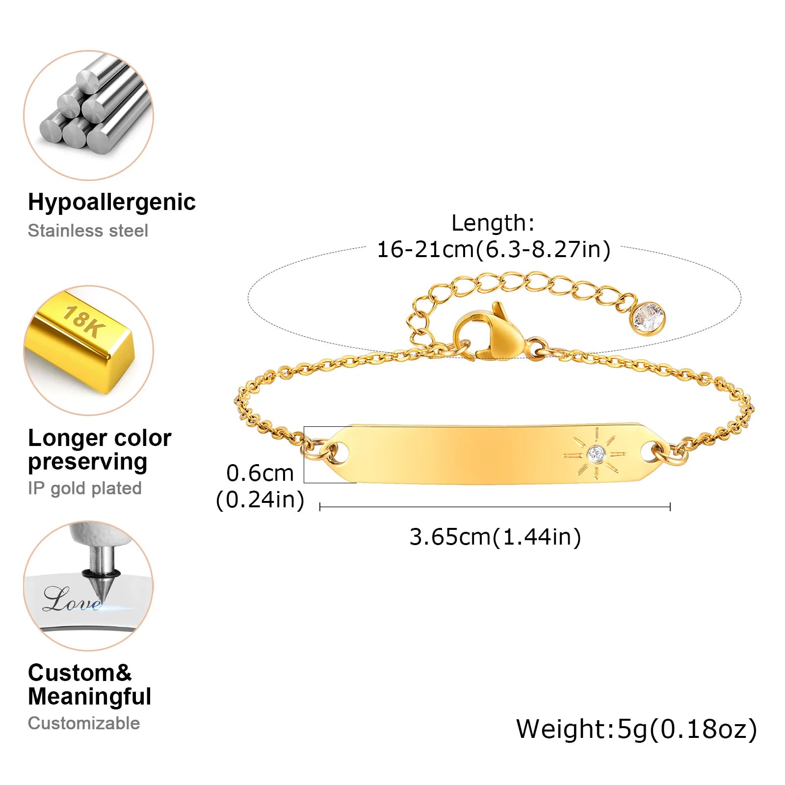 Free Custom Name Zircon Curved Bracelet for Women Stainless Steel Rolo Chain Engraving Name Date Pattern Bracelets Jewelry Gifts
