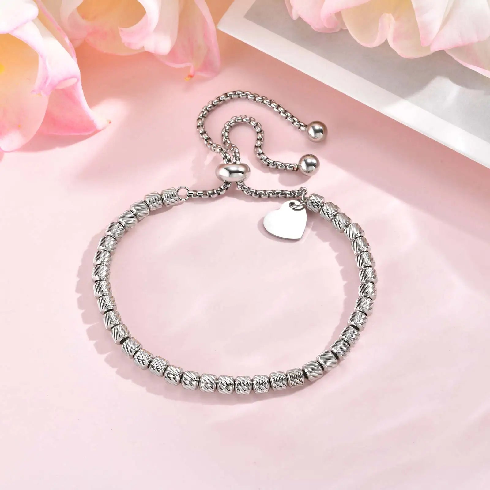 High Quality Beads Heart Charm Bracelets For Women Men Adjustable Stainless Steel Couple Jewelry Fashion Valentine's Day Gift