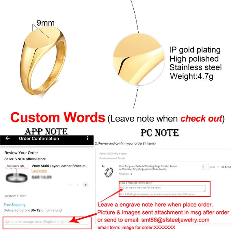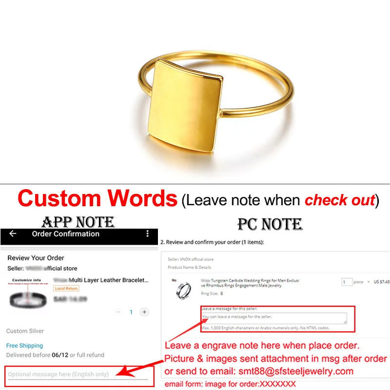 Minimalist Rectangle Signet Rings for Women, Personalized Name Stamp Band Gold Tone Stainless Steel Jewelry Custom Initial Gift