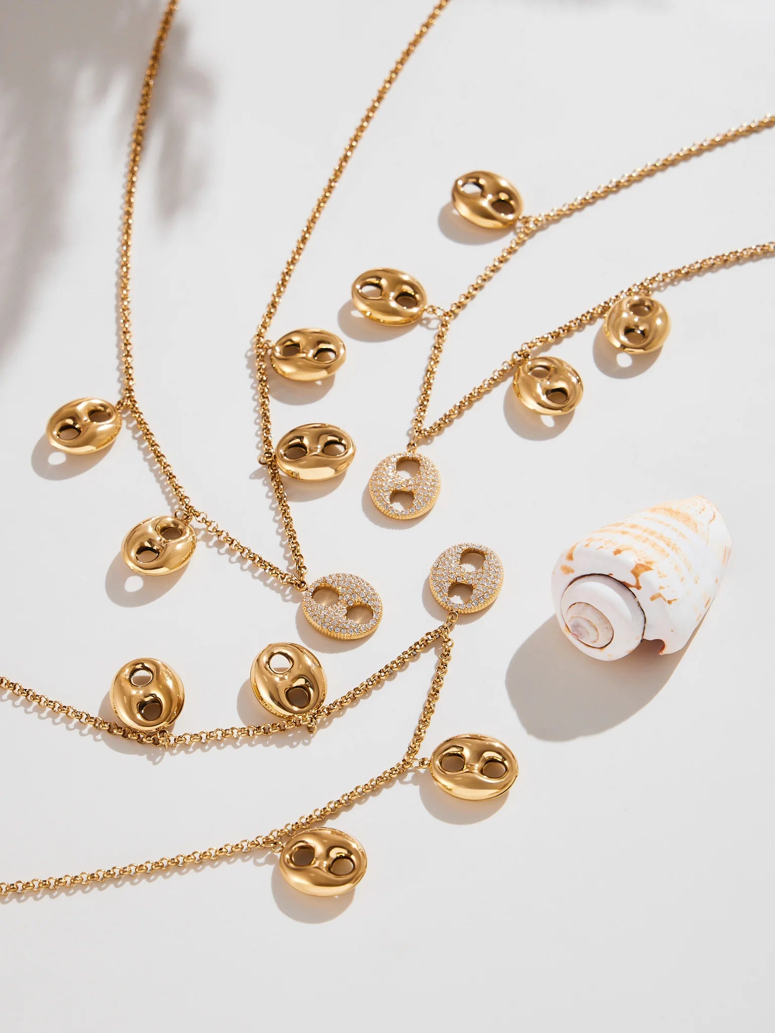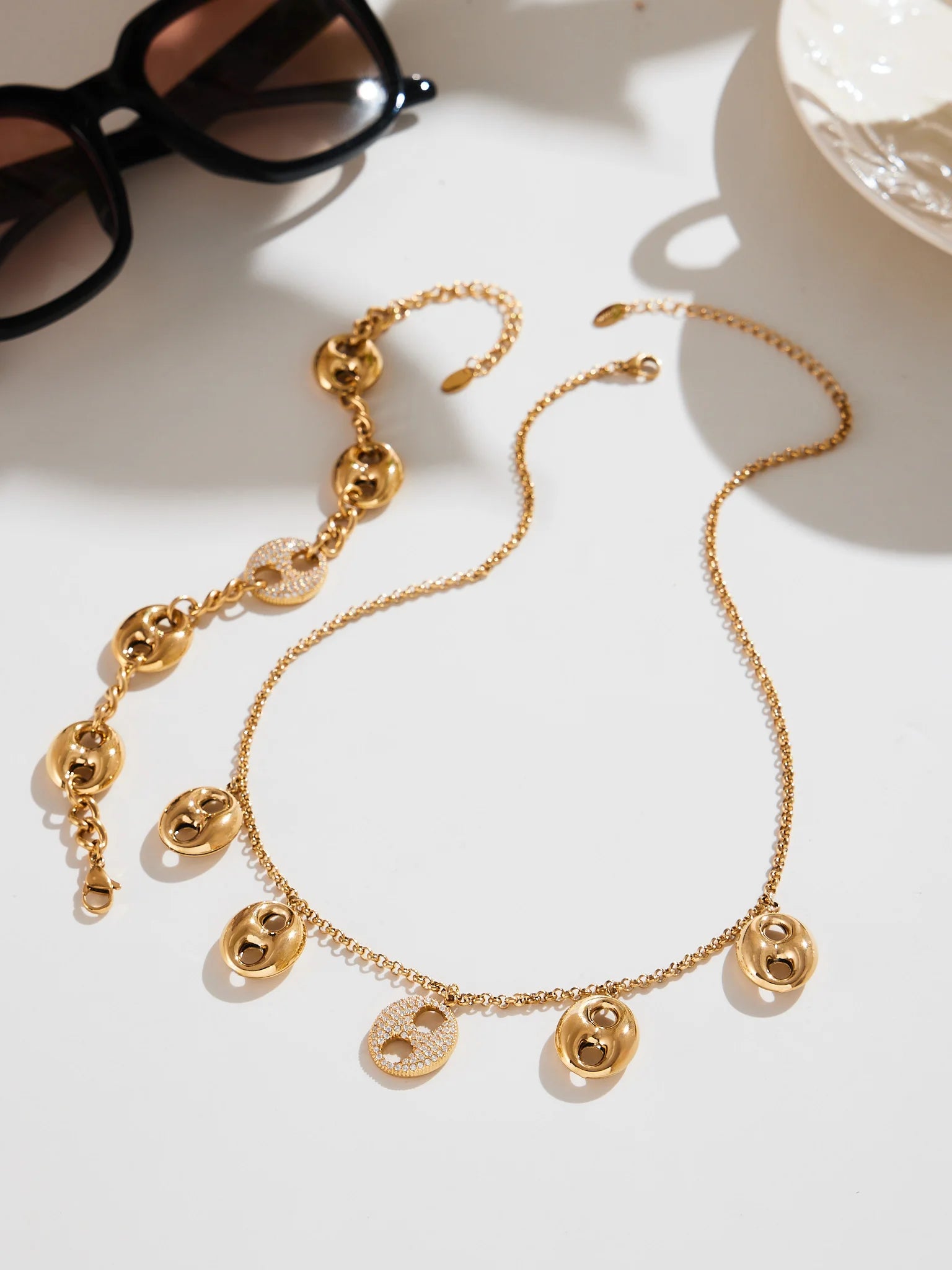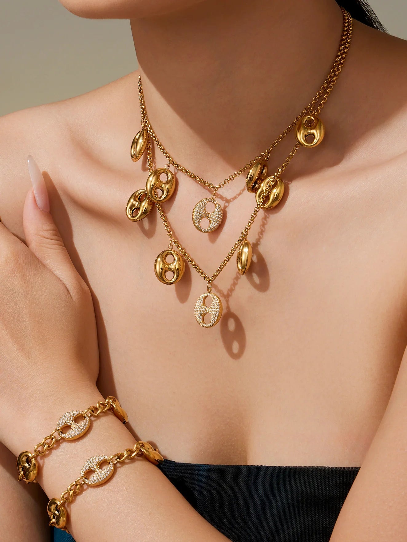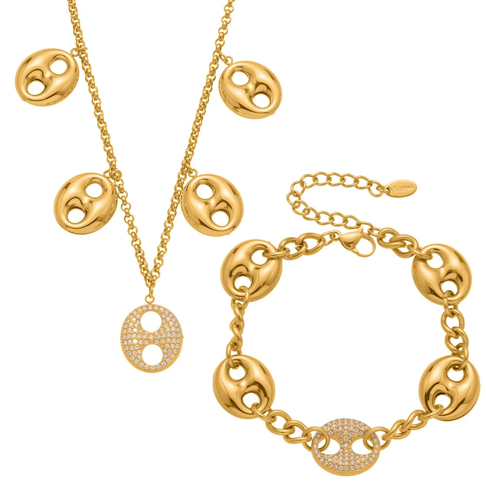 Nivora Cubic Zirconia Pig Nose Ring Necklaces Bracelets for Women Stainless Steel Chain 18K PVD Gold Plated Party Charm Jewelry