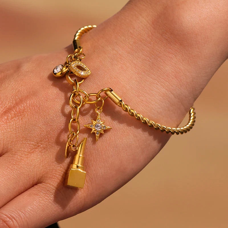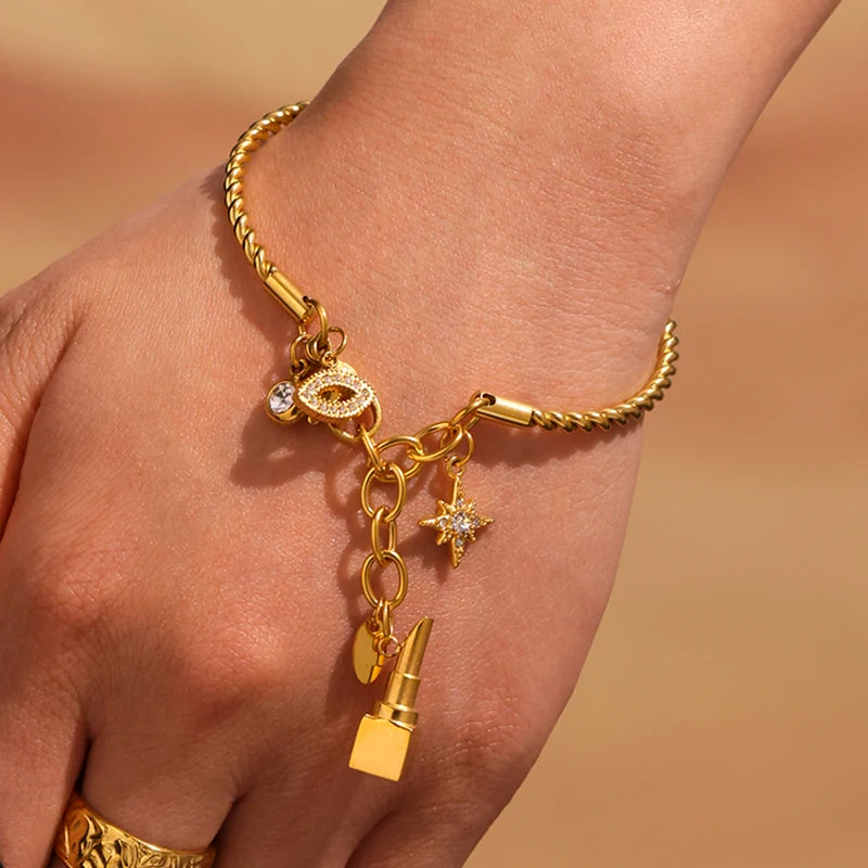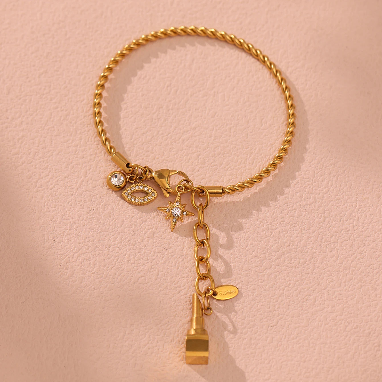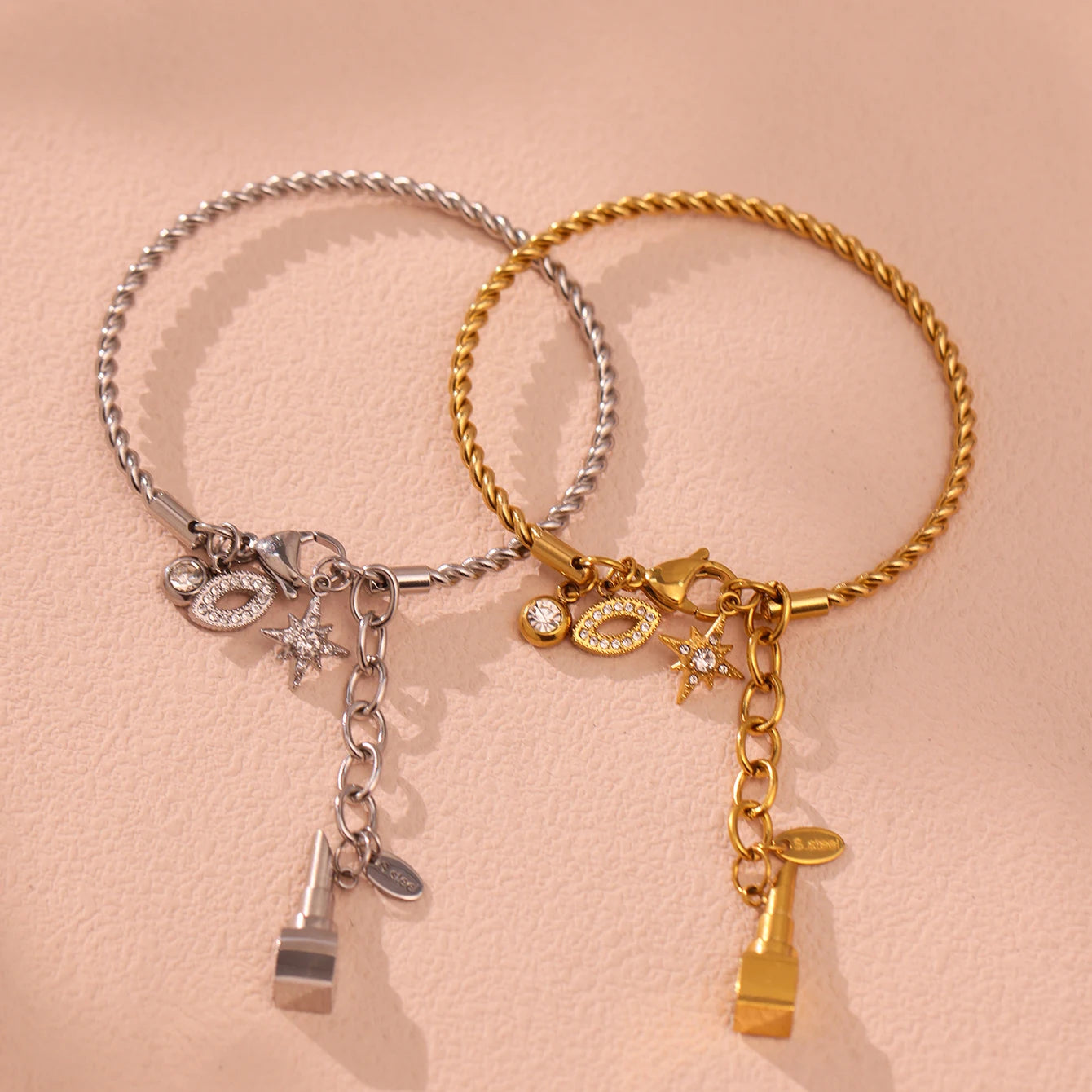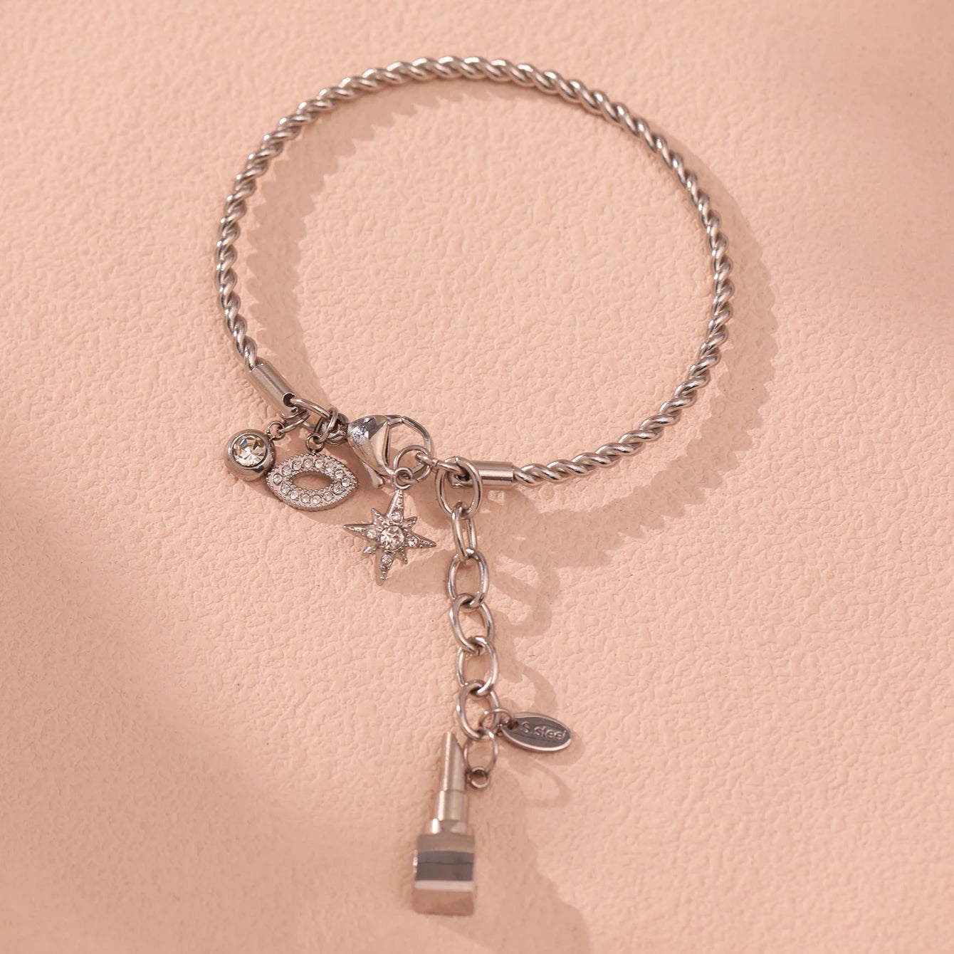 Nivora Fashion Lipstick Star Pendant Bangle For Women Stainless Steel Twistedwire Zircon Wedding Bangle Bracelet Casting Jewelry