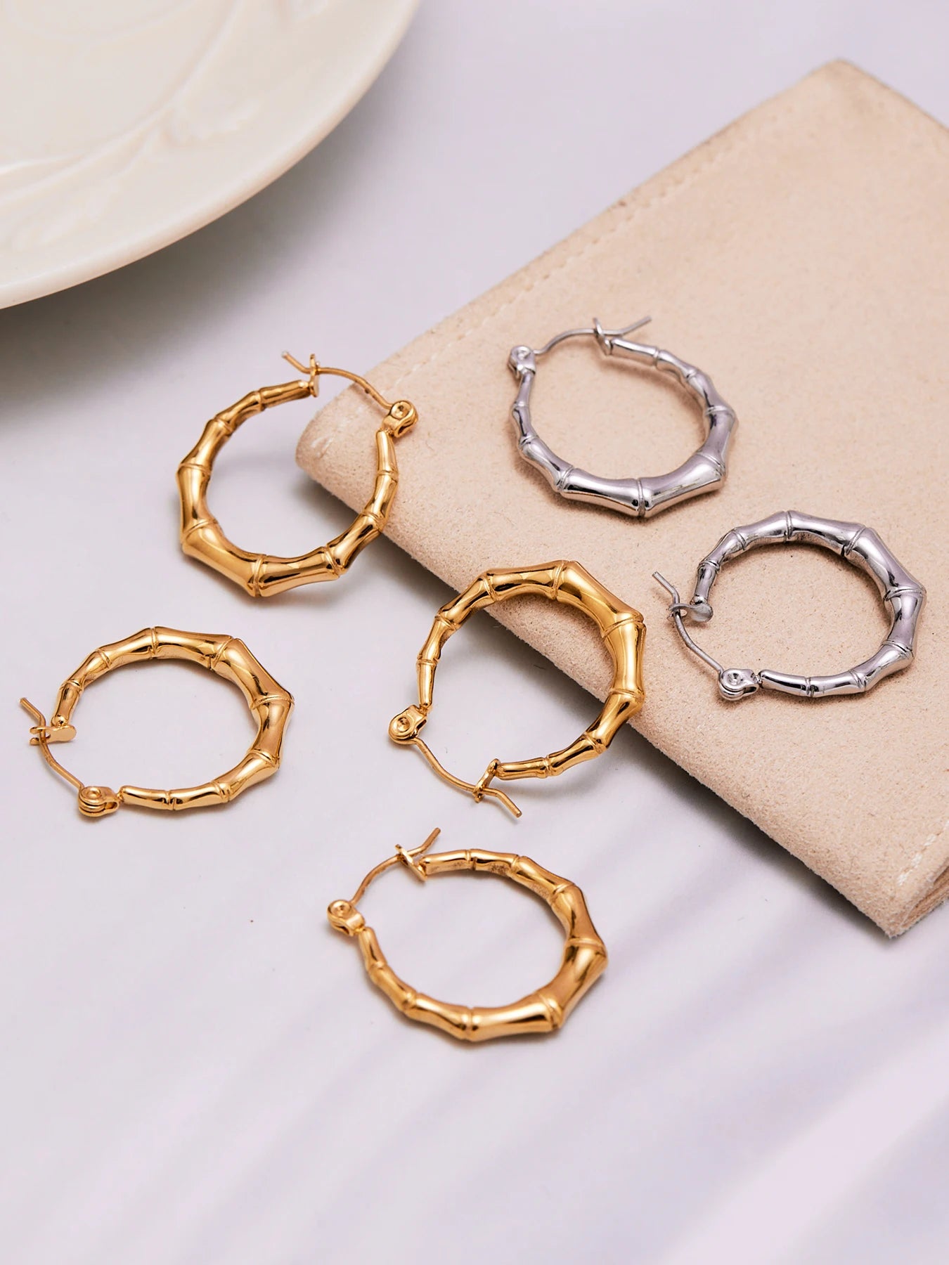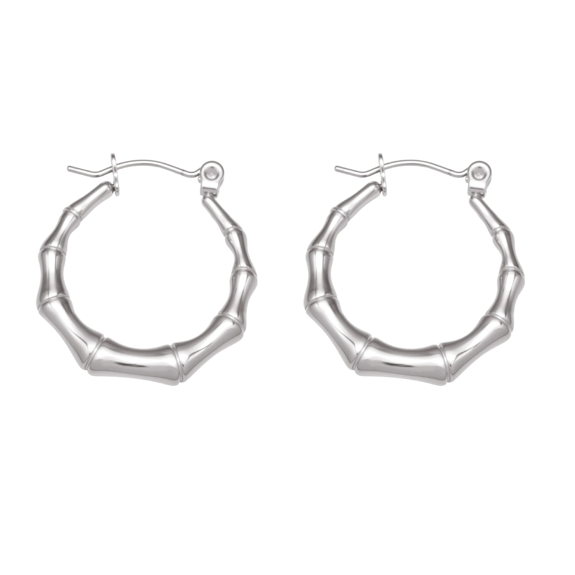 Nivora Minimalist Bamboo Hoop Earrings For Women Gold Plated Stainless Steel Hypoallergenic Charm Earrings Fashion Basic Jewelry
