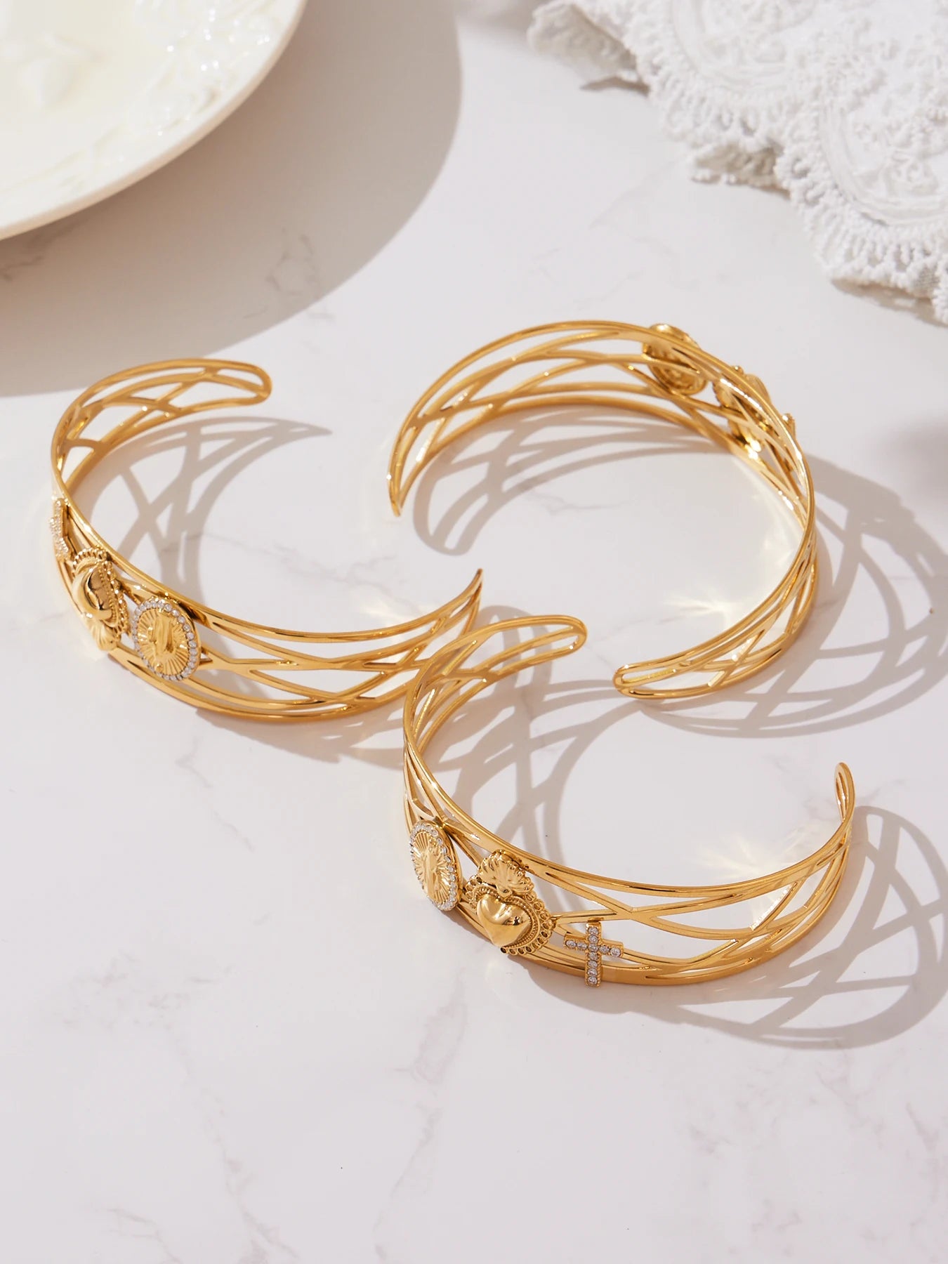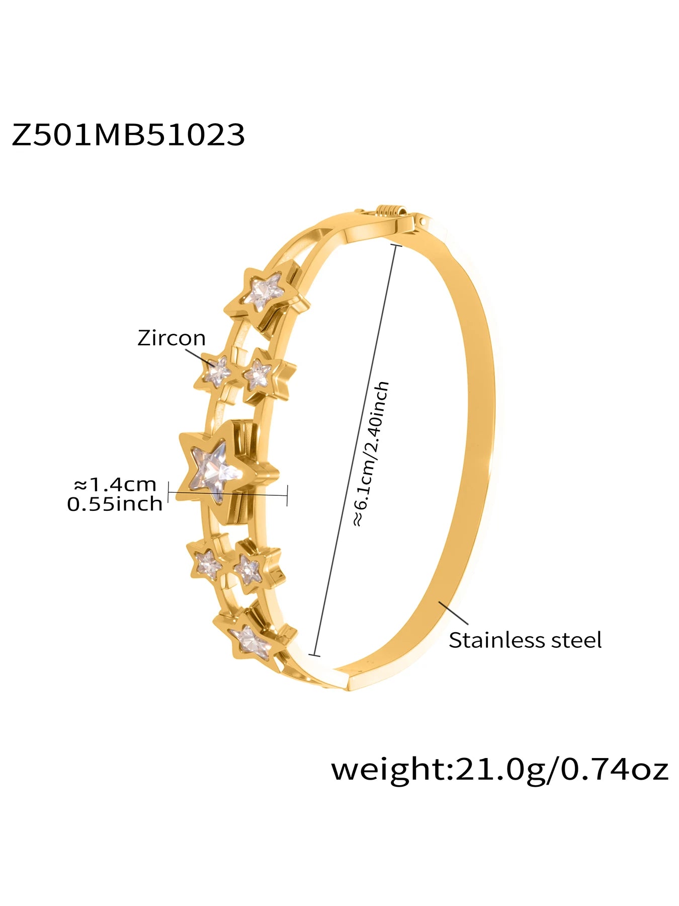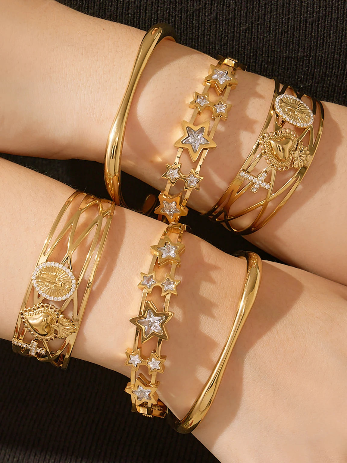 Nivora Minimalist Cubic Zirconia Charm Cuff Bracelet for Women Stainless Steel Gold Plated Wedding Banquet Charm Bangles Jewelry
