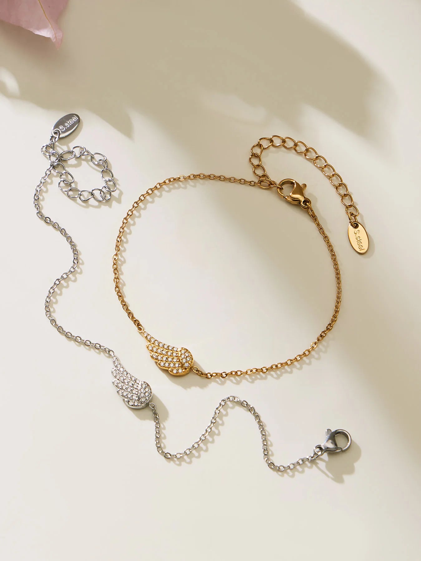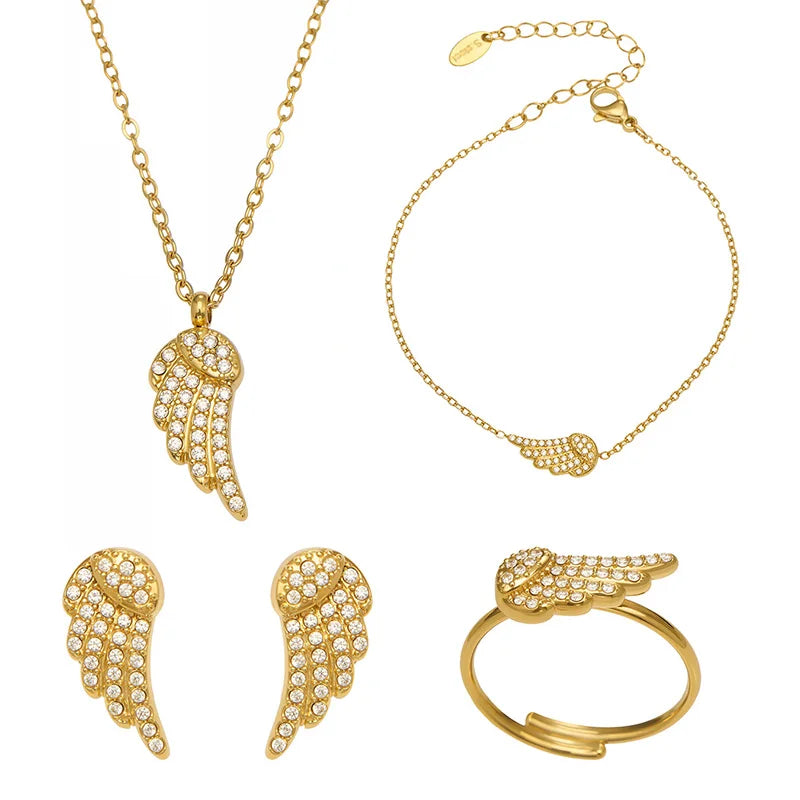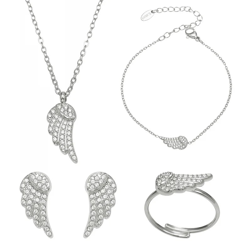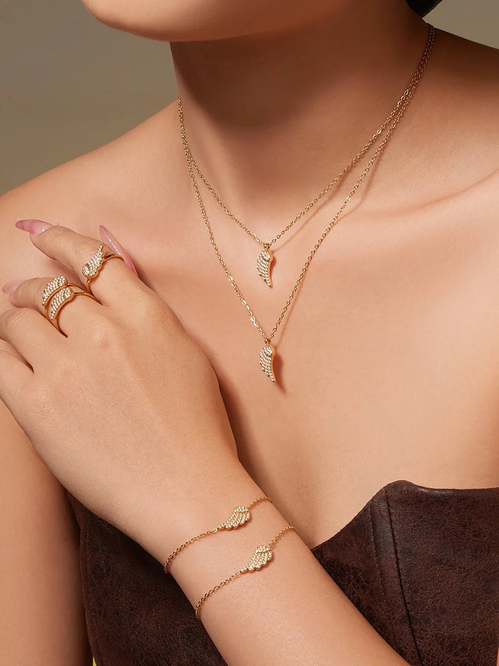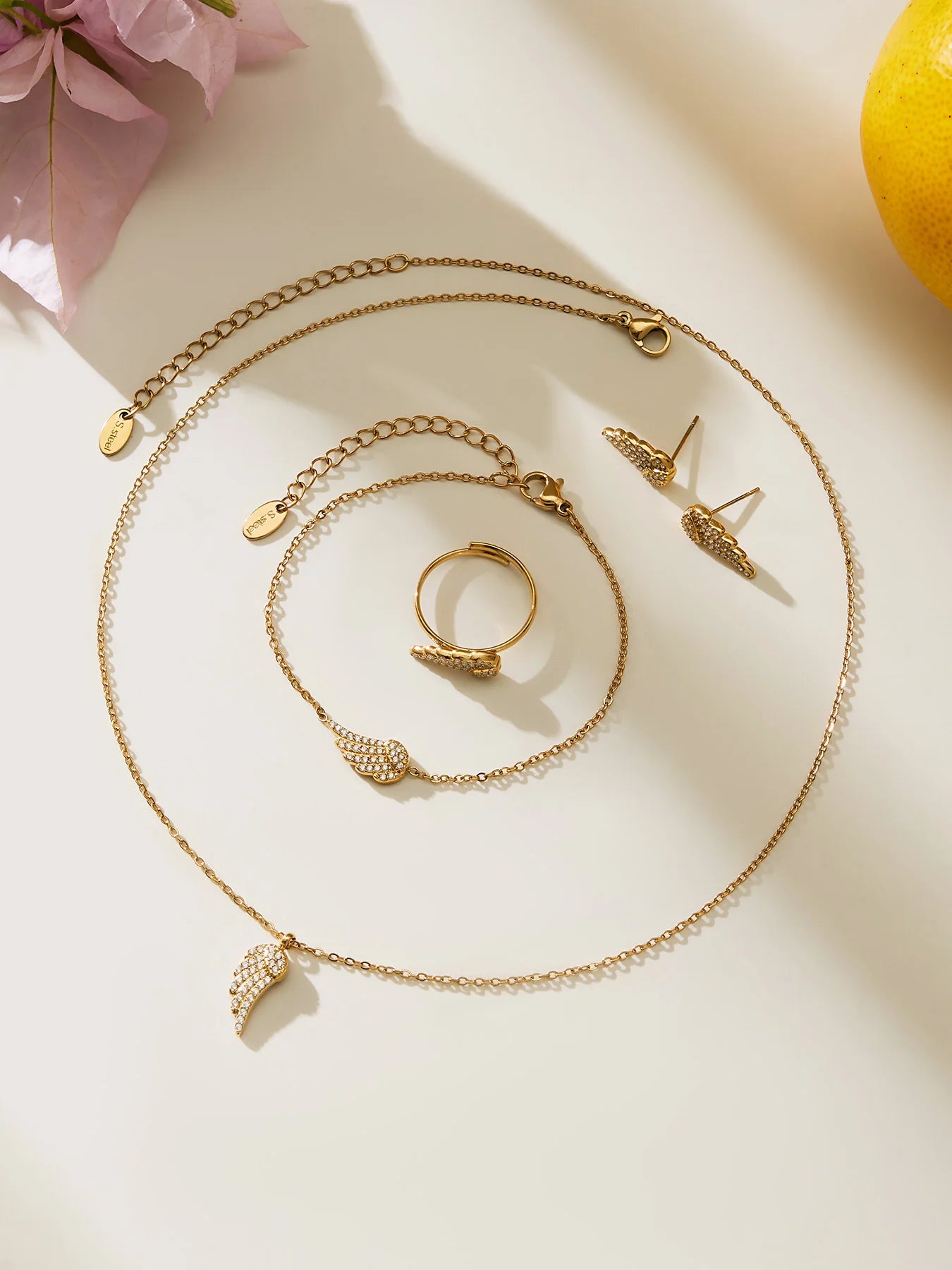 Nivora Wings Cubic Zirconia Pendant Chain Necklaces Bracelets Rings Earrings for Women Stainless Steel Wedding Banquet Jewelry