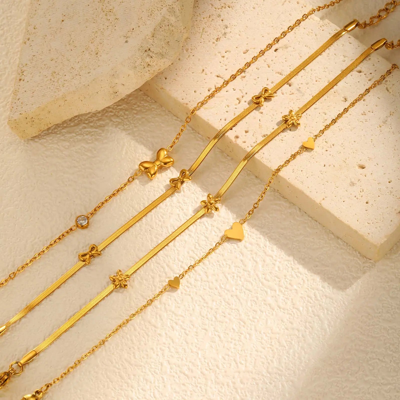 Stainless Steel Flat Rolo Chain Heart Bracelet for Women,Blade Chain Bracelets with Butterfly Accessories,Fashion Jewelry Gift