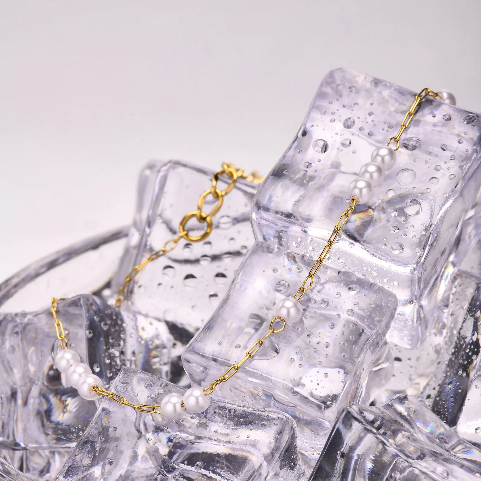 Stainless Steel Pearl Anklets Bracelet for Women, 18k Gold Plated Foot Chain Adjustable Stackable Bracelets on Leg Jewelry