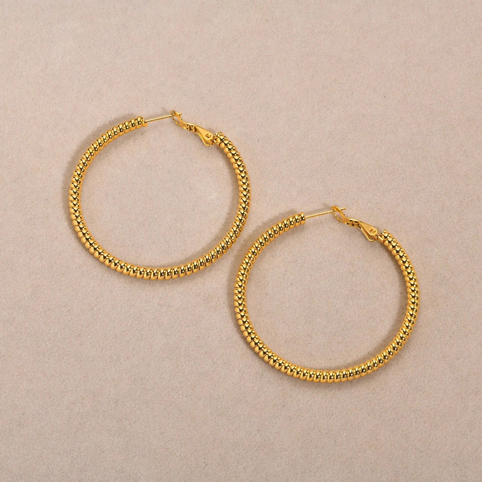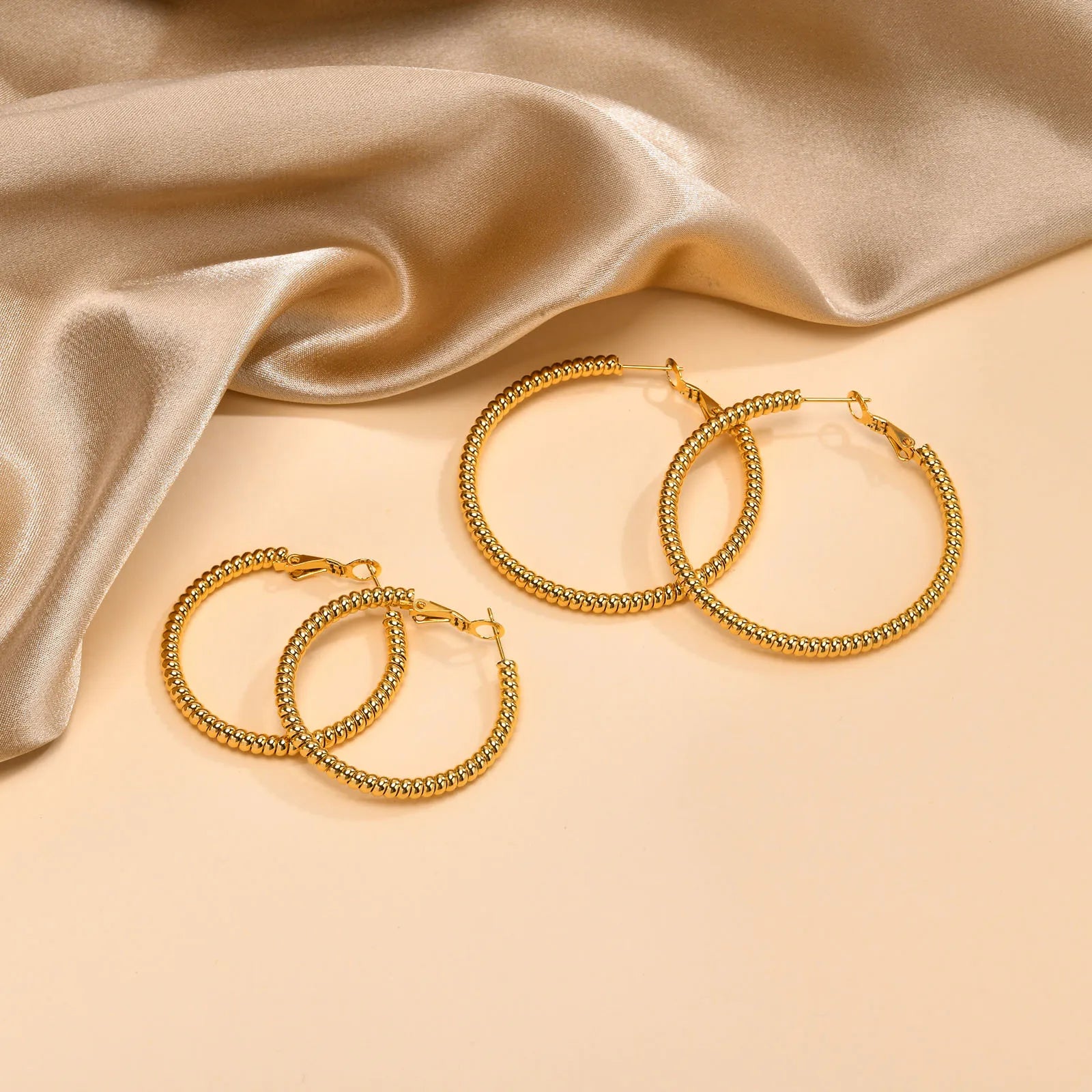 Trendy Round Hoop Earrings for Women Birthday Party,Chic Gold Color Stainless Steel Earring Jewelry Gifts to Mom Wife Girlfriend