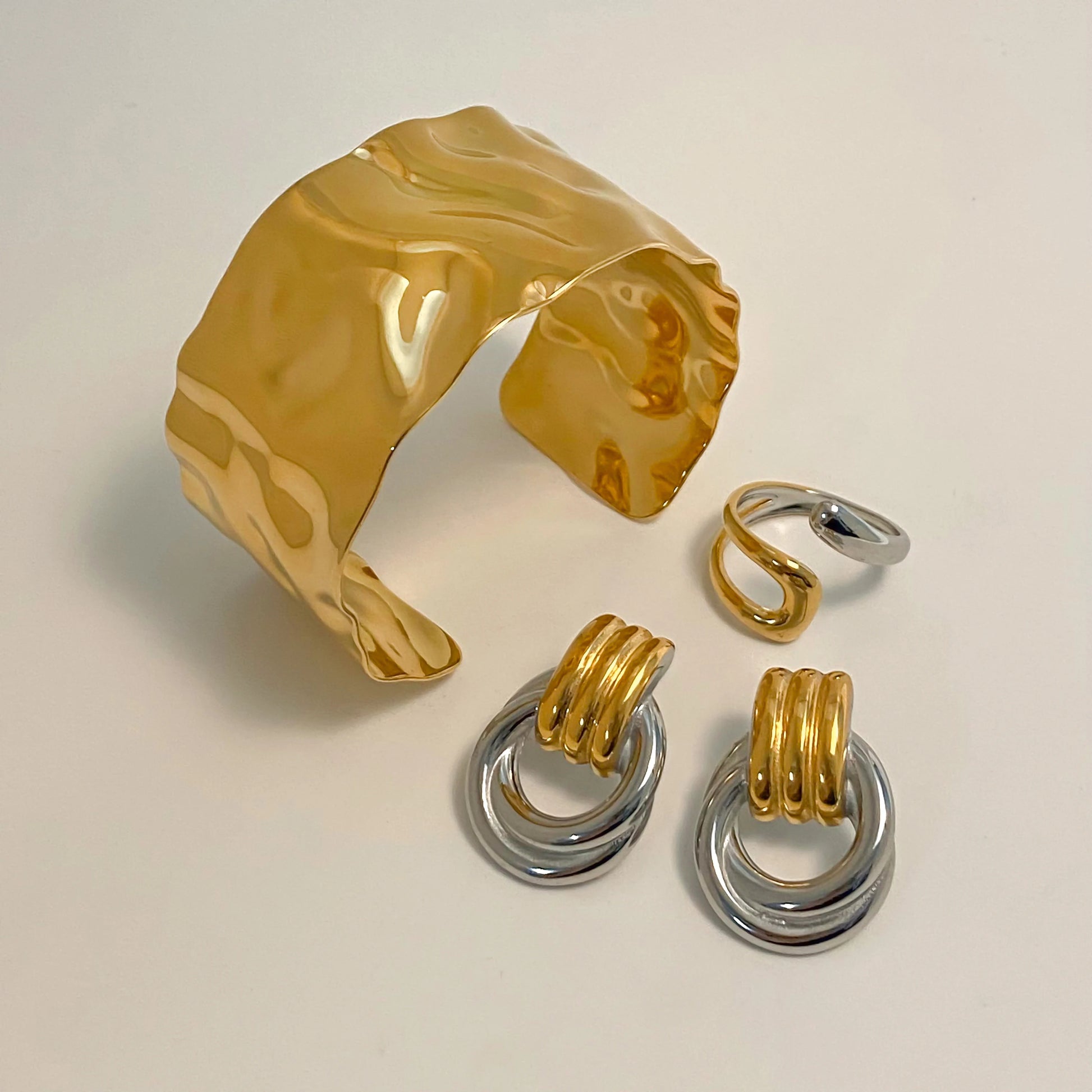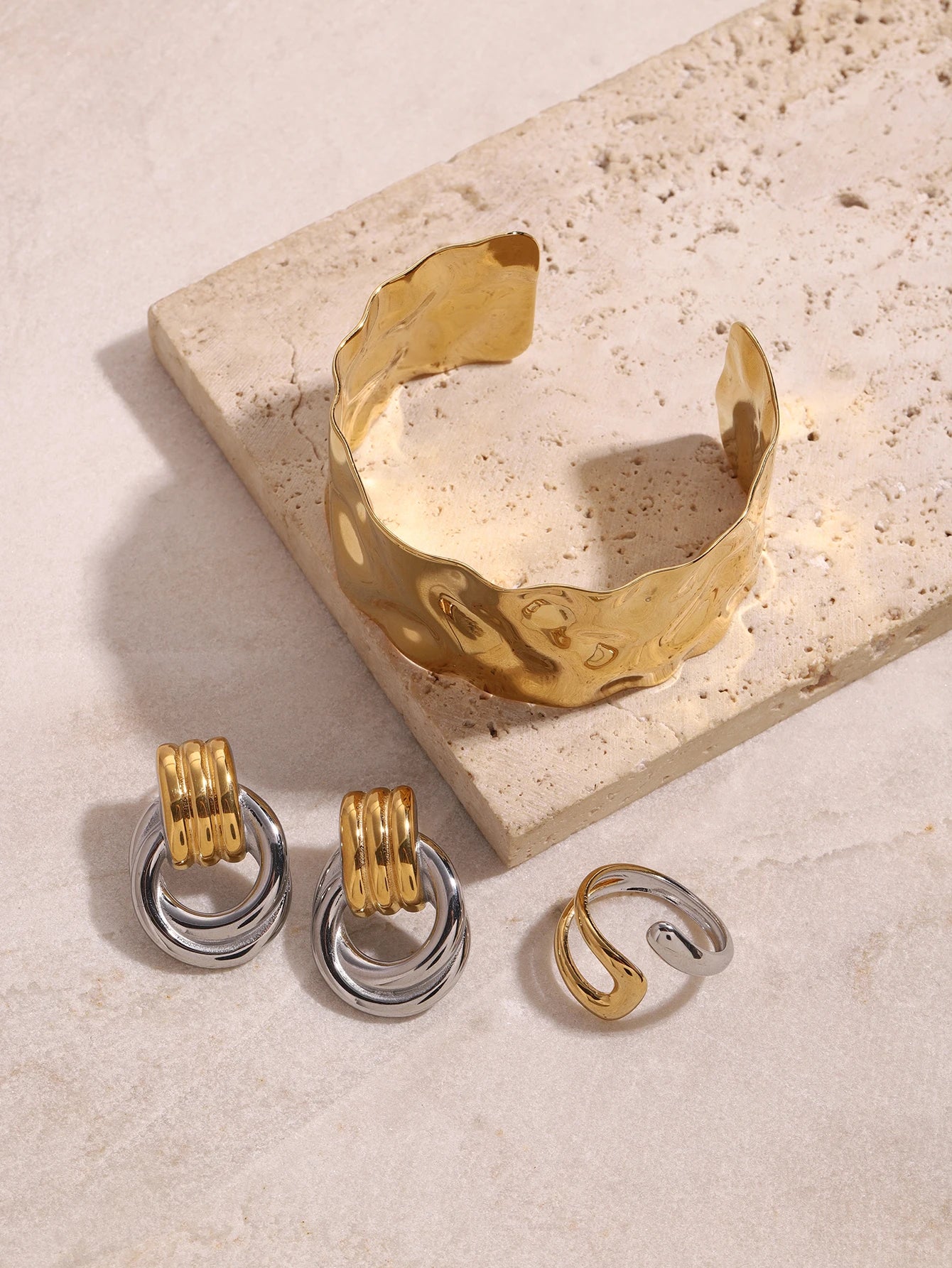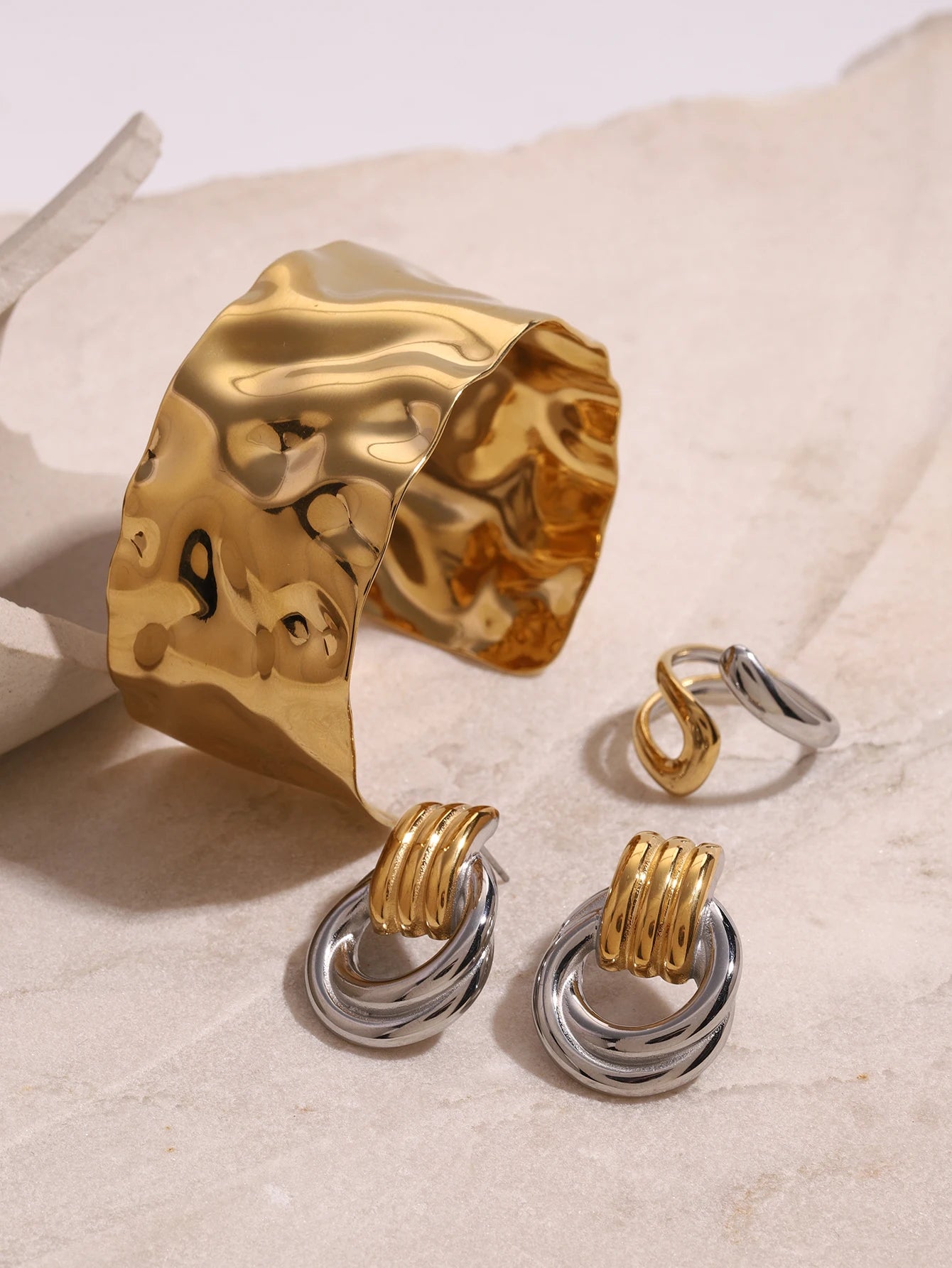 Uworld Fashion 4PCS Jewelry Set Wide Face Bracelet Two Tone Ring Women's Jewelry Commuting Attire Gift For Her