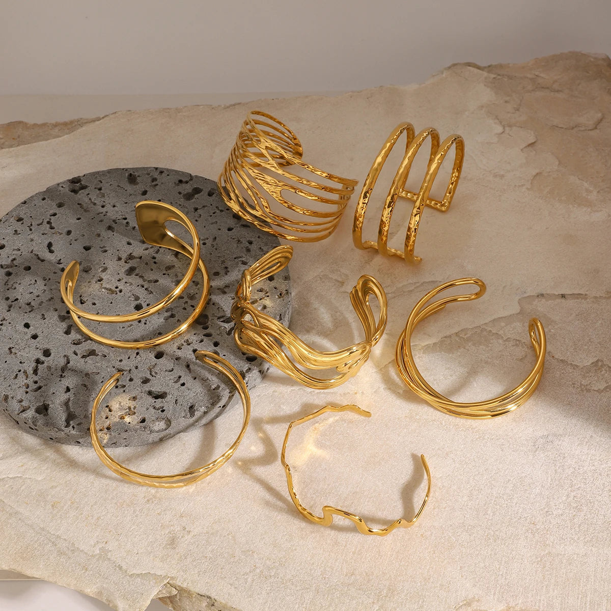 Uworld Fashion Handmade Hammered Stacking Bracelets Line Bangles Women's Jewelry Gift for Her