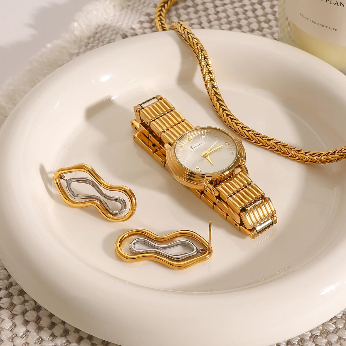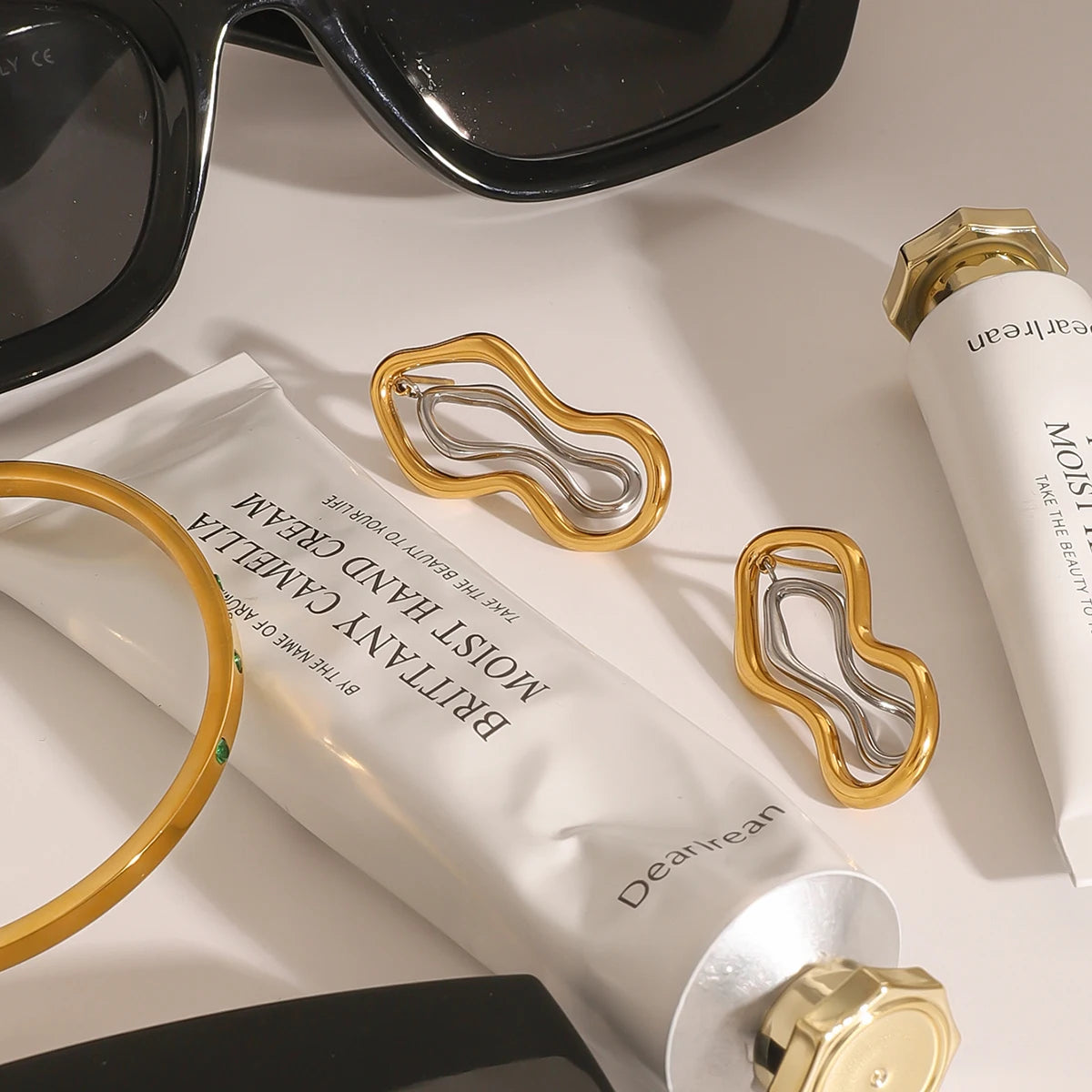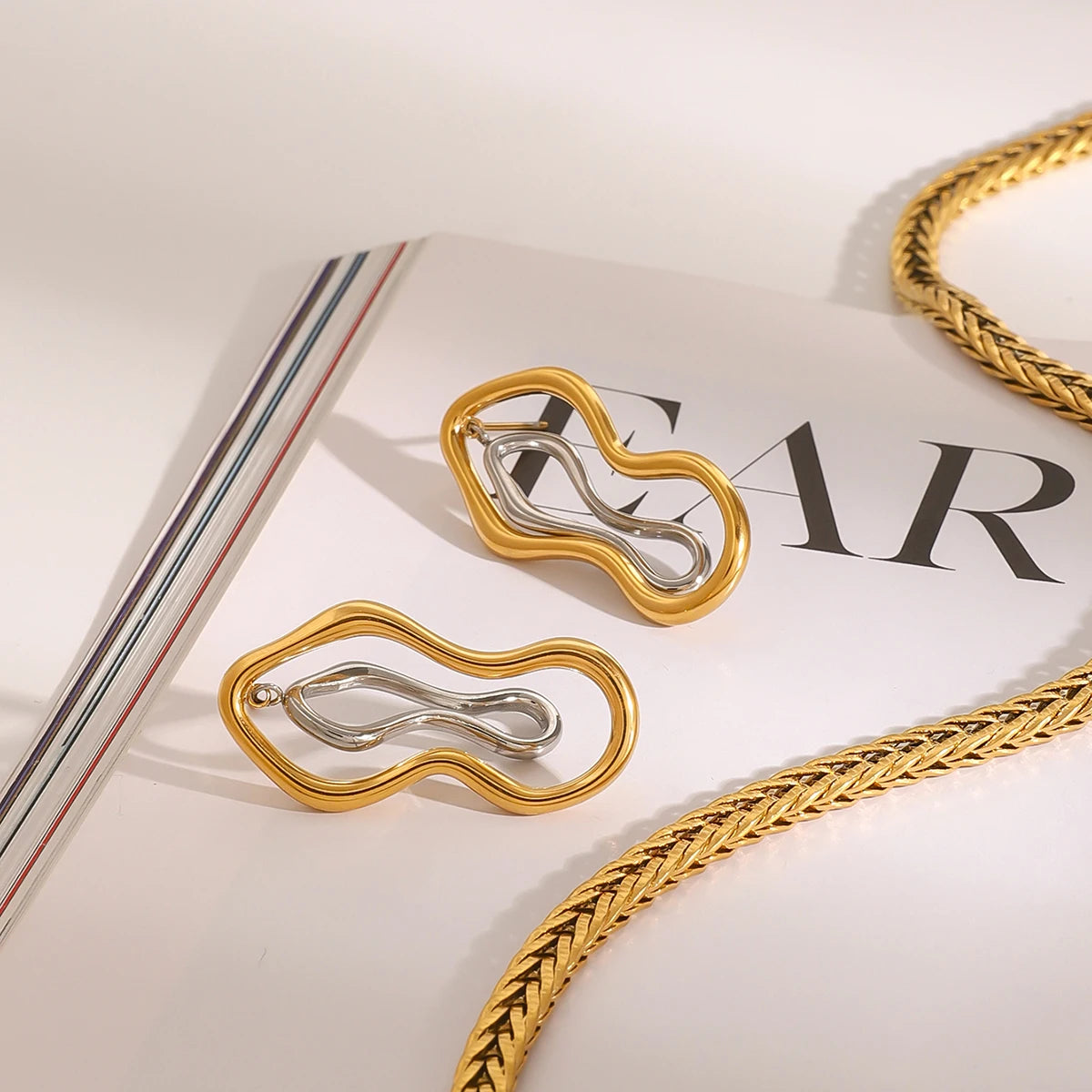 Uworld Minimalism Two Tone Sculptural Freeform Earrings Geometric Irregular Earrings Women's Accessories Gift for Her