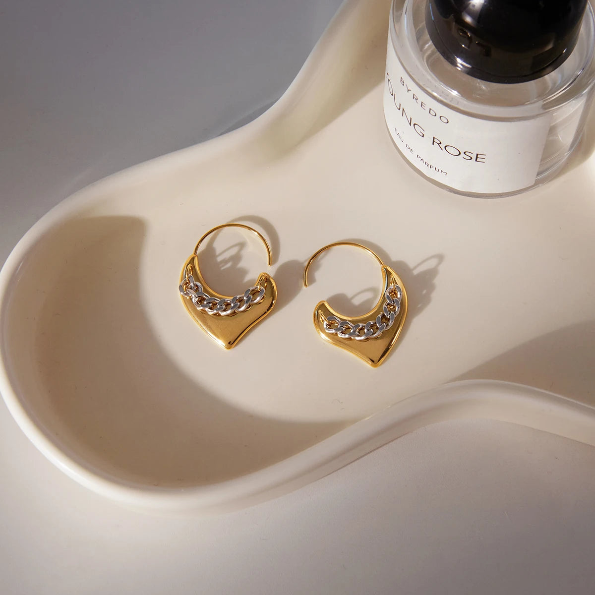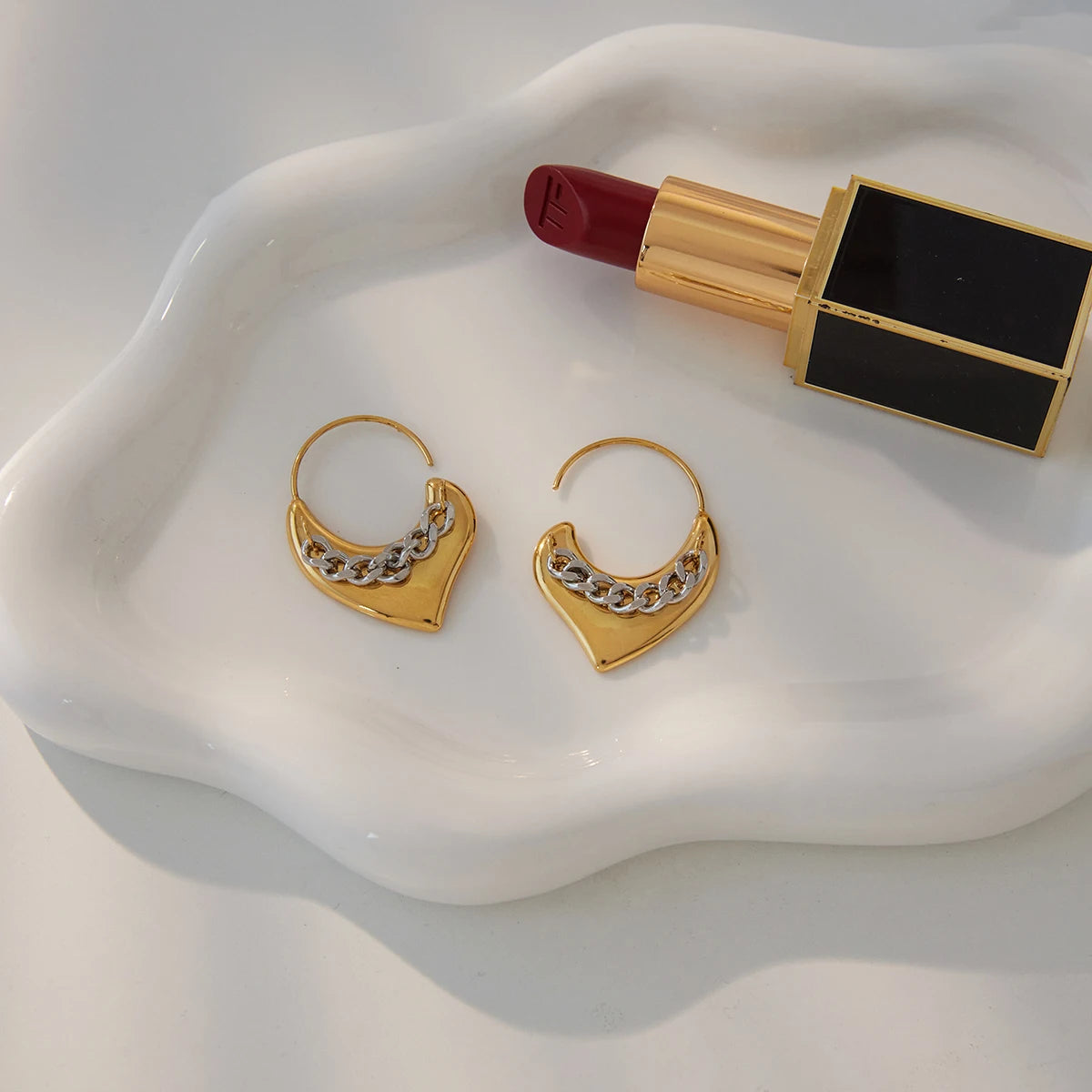 Uworld Minimalist 18K Gold Stainless Steel Gold And Silver Color-block Chain Heart Earrings Women 18K PVD Plated Fashion Jewelry
