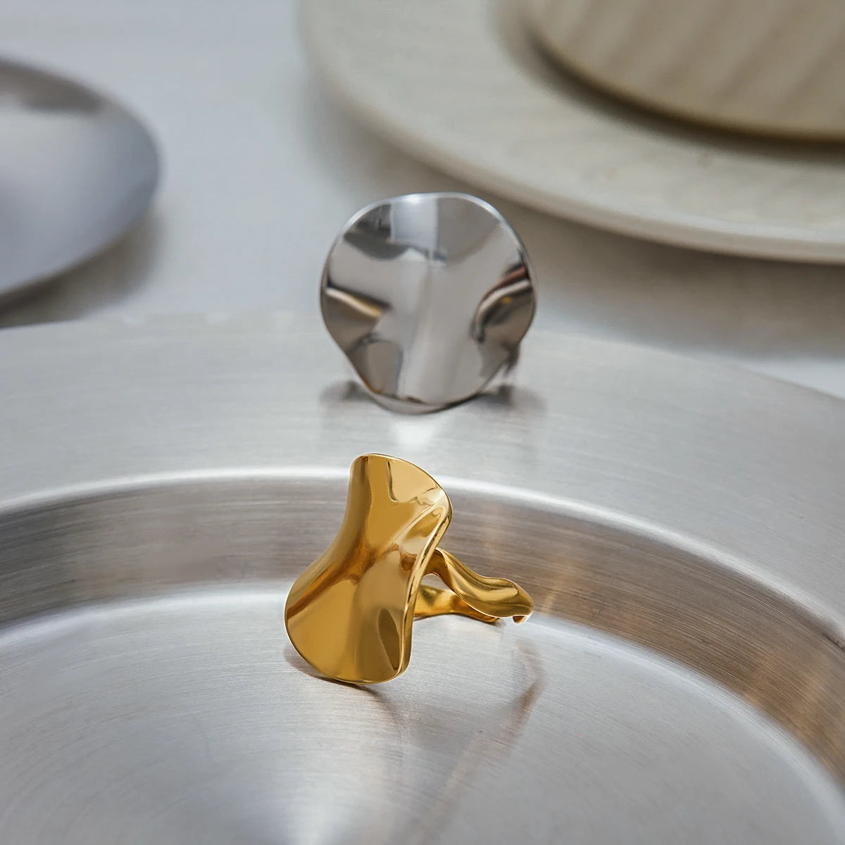 Uworld Minimalist Circular Folded Ring 18K Gold Color Plated Stainless Steel Large Circular Wave Stackable Ring Women's Jewelry