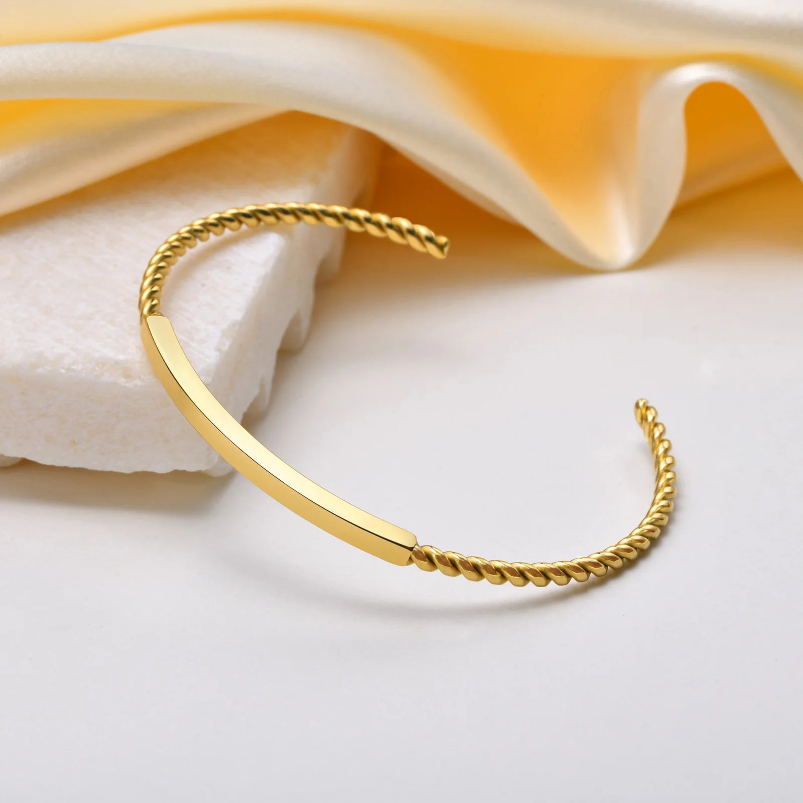 Women's Trendy Slim 3mm Cuff Bracelets Bangle, Gold Color Stainless Steel Bangle Stylish Twisted Rope Wristband Gift To Girls